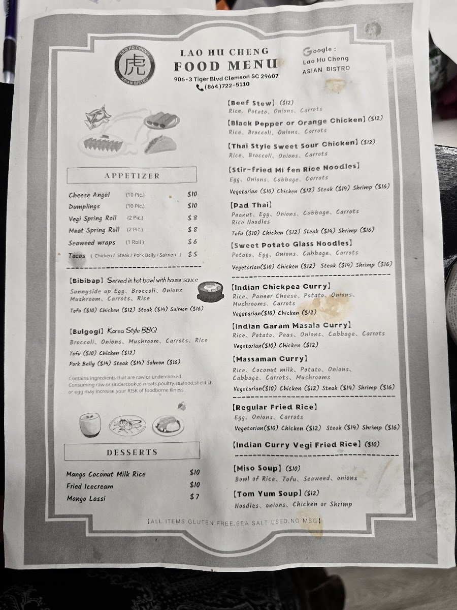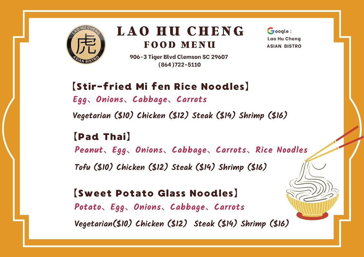 Mushroom, onion, peanuts, coconut milk, rice noodles. Your choice of Chicken or Shrimp for an additional cost.